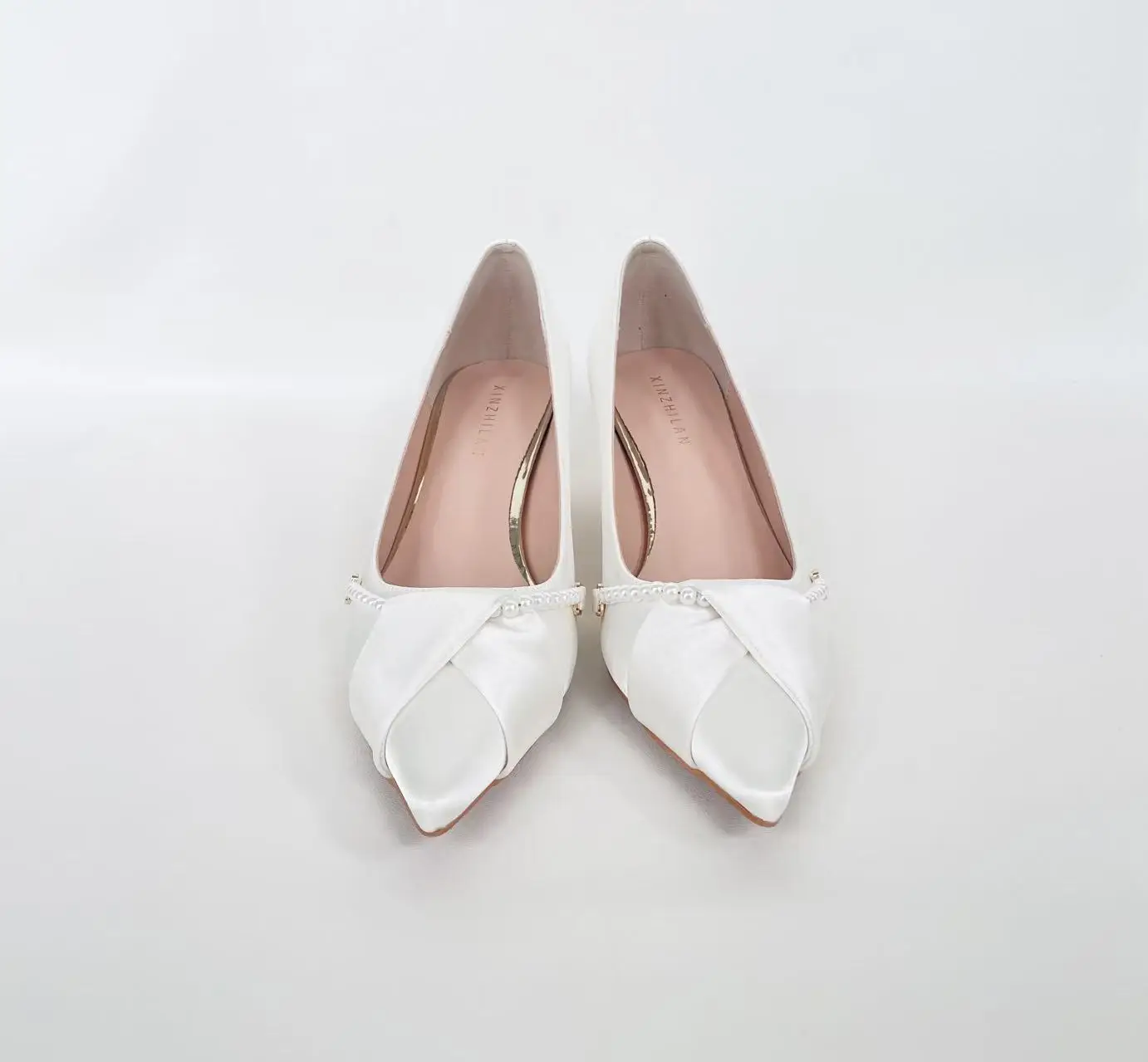 Be the first to review “Ladies Bride Shoe Pointed Toe Stiletto Wedding Shoes Set White Silk Bow Large Size 5 Cm Heel Wedding Shoes For Bride”