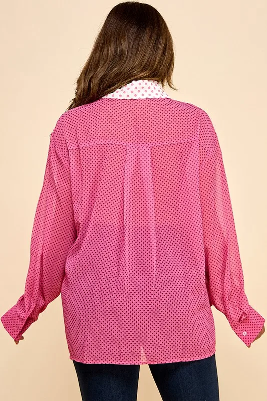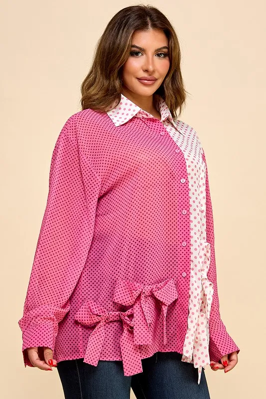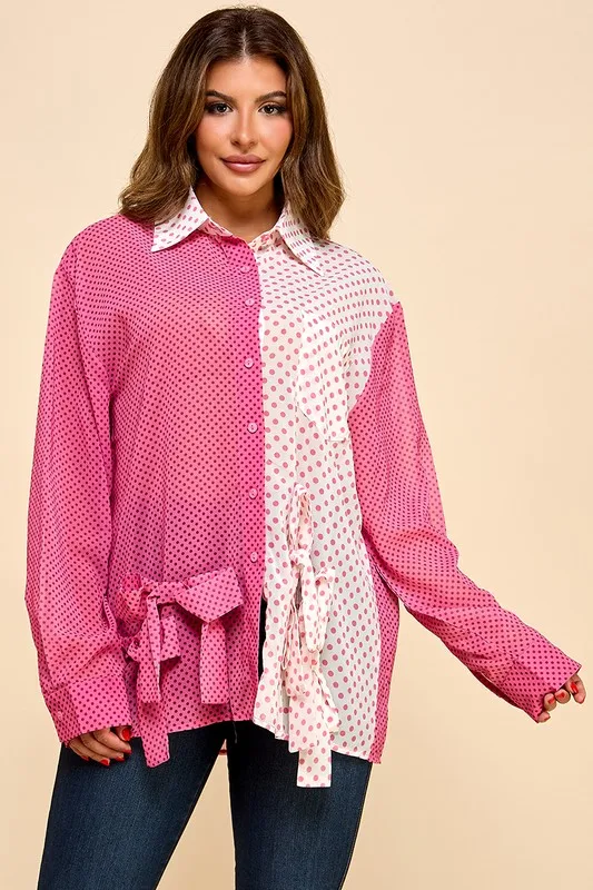 Ladies' Multi-color Polka Dot Hem With Bow Knot Casual Shirt