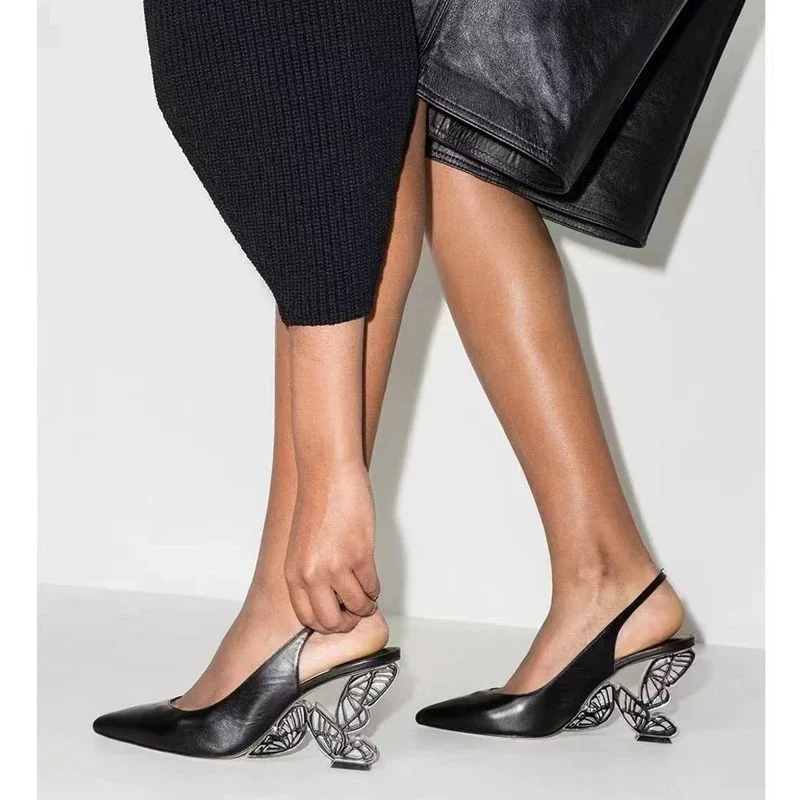 Ladies Pumps Shoes Pointed Toe Special Butterfly Heel 8cm Lace Up Roma Women's Shoes High Heels