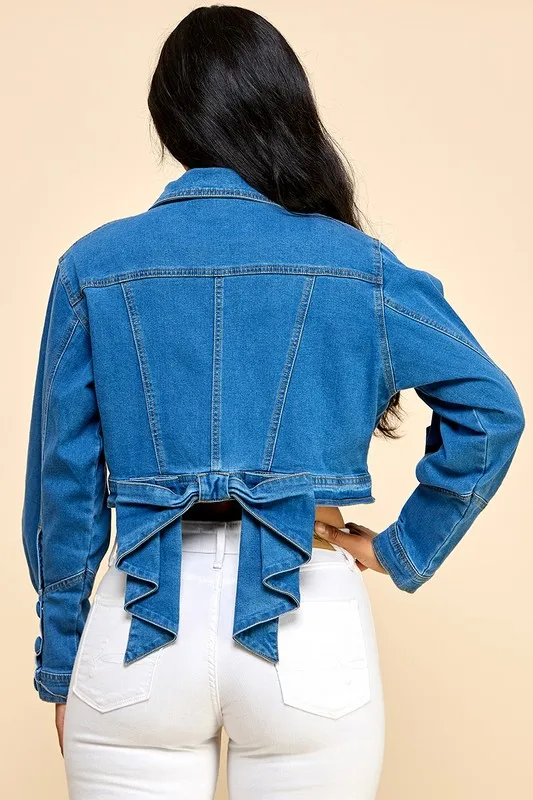 Be the first to review “Ladies' Simple Leisure Denim Jacket Coat Back Butterfly Knot Decor Washed Technics Casual Style For Autumn Season”