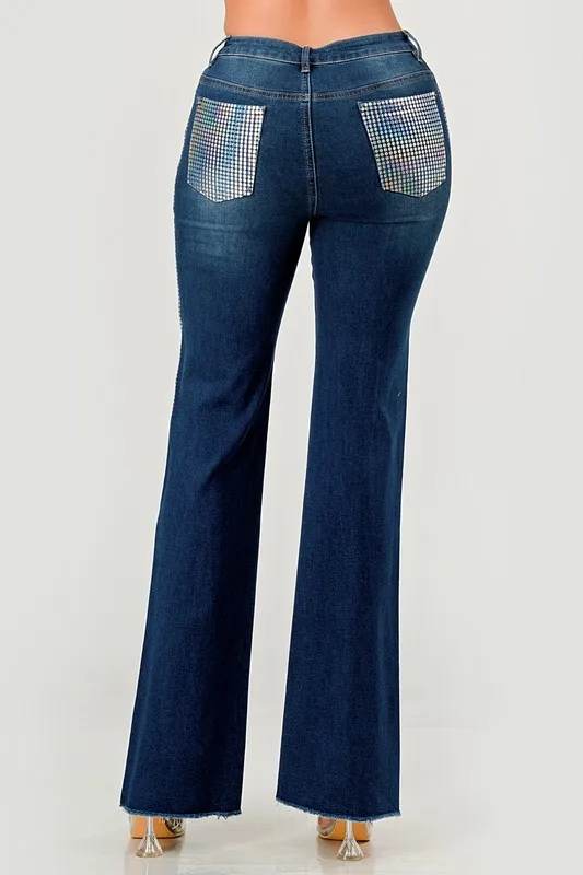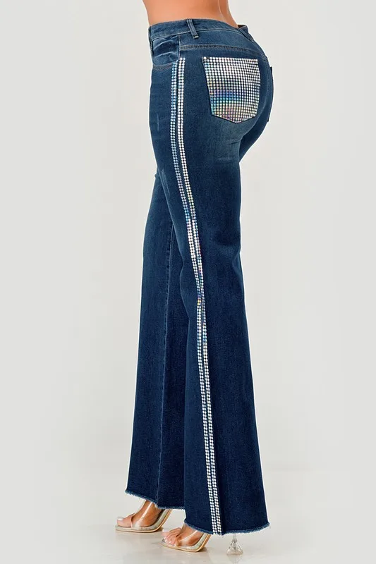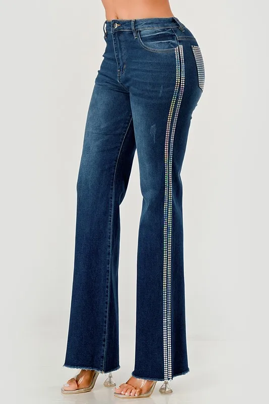 Be the first to review “Lady's Breathable Denim Flare Pants Simple Craft Leisure Rhinestone Design Colorful Mid-waist Jeans For Spring/summer Season”