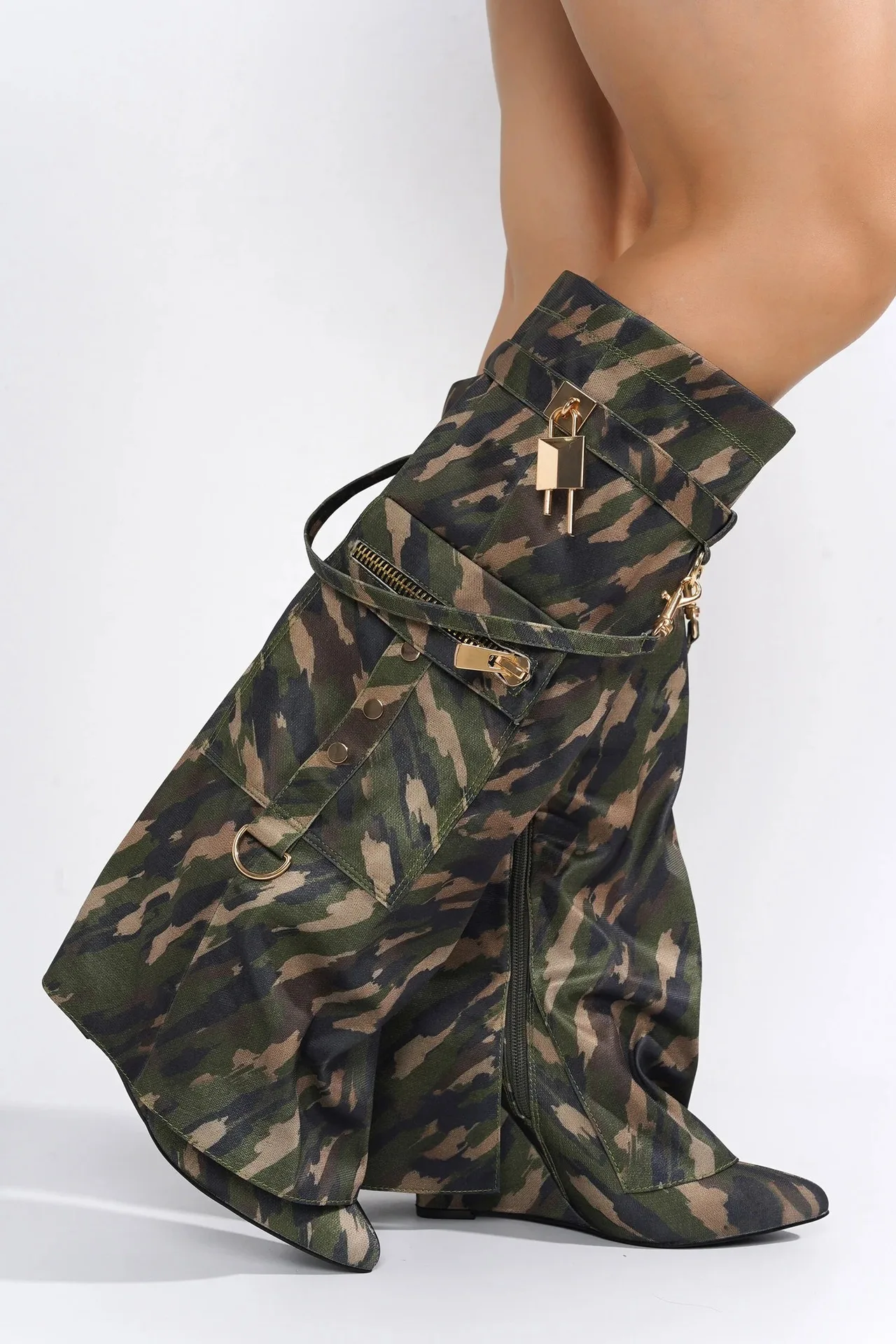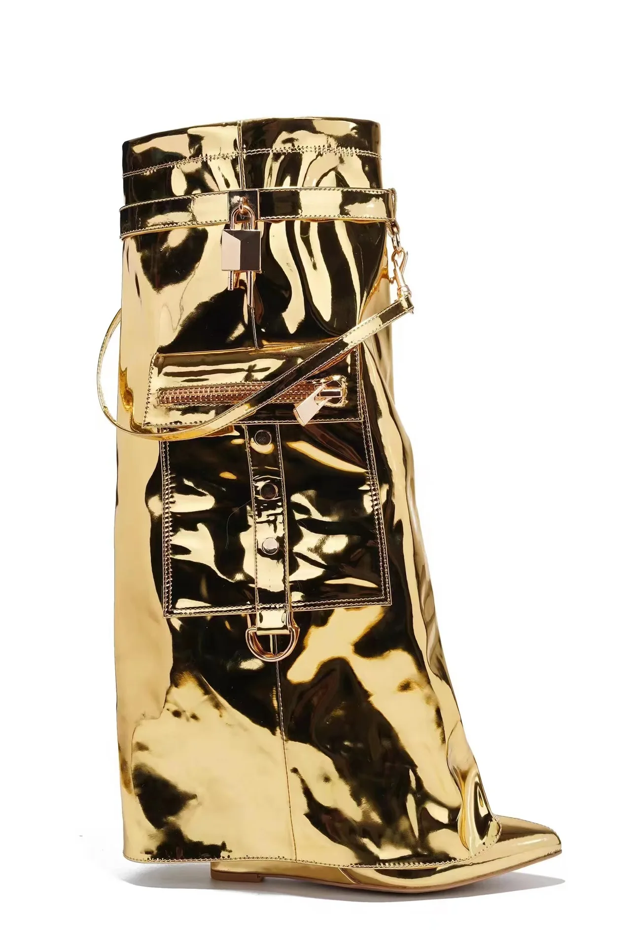 Lady Winter Knee-high Boot Big Size Wedge Heel With Lock Women Shark Boots High Quality