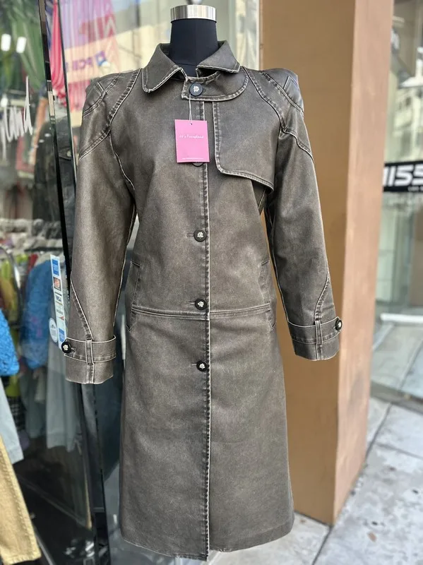 Be the first to review “Women's Long Vintage Retro Chic Pu Trench Coat With Belted Waist Structured Shoulders & Polyester Lining”
