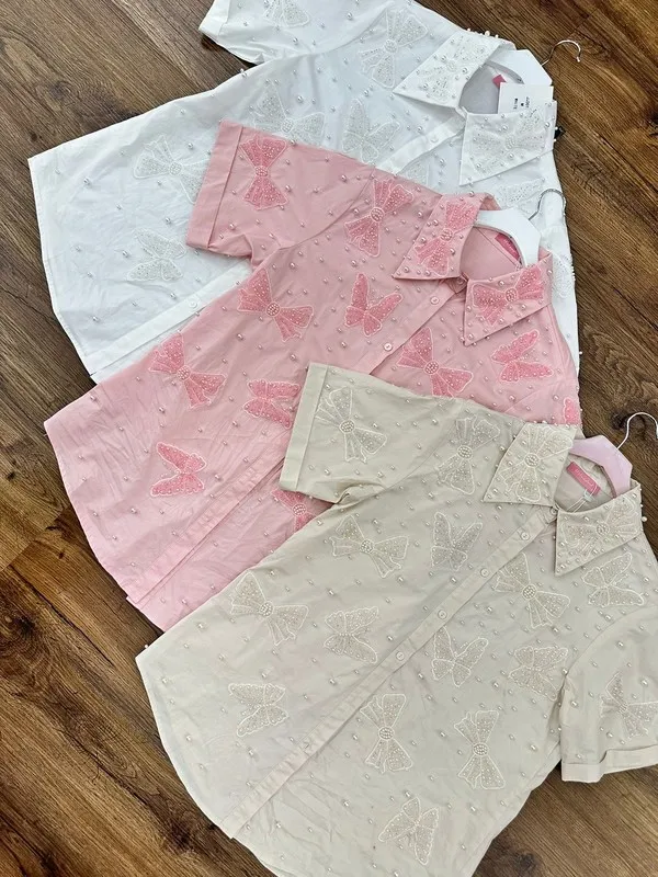 Be the first to review “Women's Pearl Shirt With Butterfly Embroidery Front Beading Short-sleeved Cute Style Woven Xl Size For Daily Wear Commuting”
